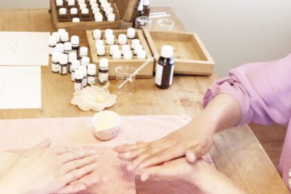 ゆっくりとお話を伺いその日のお客様の心と身体に合わせて、30種類以上の精油(エッセンシャルオイル)から数種類をご提案させていただき調香します。心や身体が精油の香りとエネルギーに共鳴し、心の一番やわらかいところで愛を感じていただけるようにと思い調香しております。