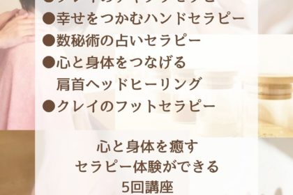 ハンドやヘッドセラピー、数秘術占いを活用し、自分の強みや使命を知り、自分らしく生きるコツや自己肯定感を高める方法、ココロと身体を整える実践的な内容をご提供いたします。企業様のイベントや福利厚生、介護施設、学校・PTA、生涯学習講座、ワークショップなど、さまざまな場面でご活用いただけます。また、個人向けの鑑定やヒーリングセラピーも承ります。