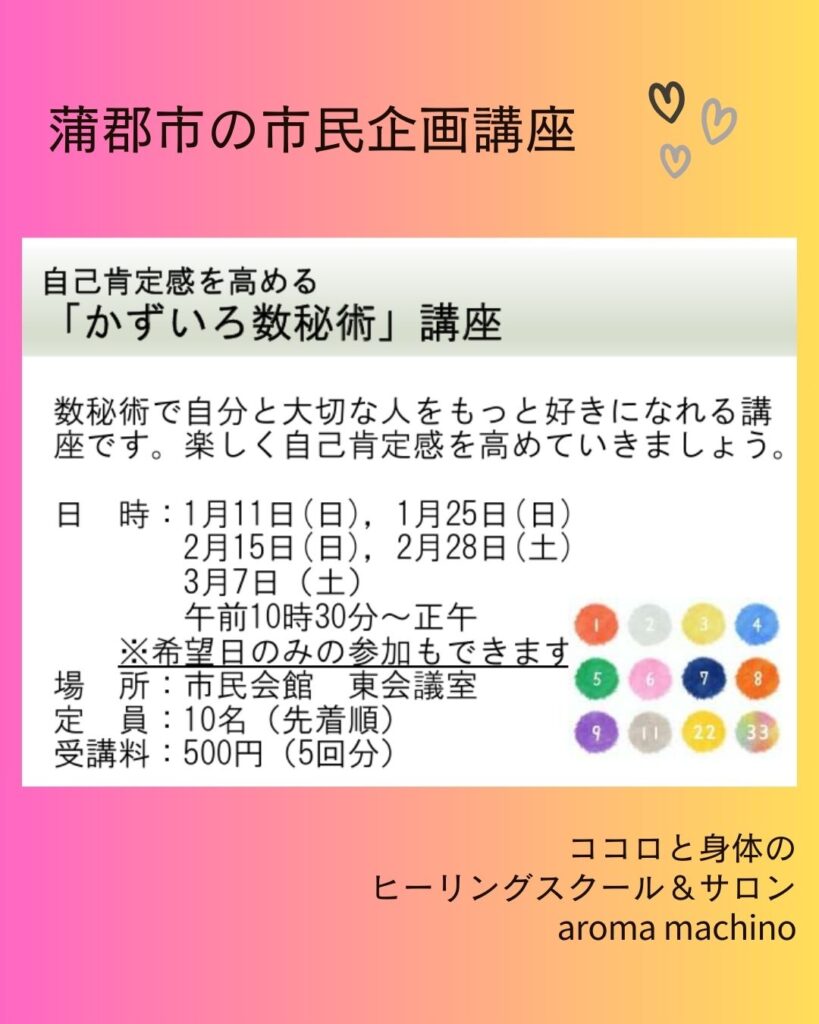 「自己肯定感を高めるかずいろ数秘術」5回講座がスタートします。